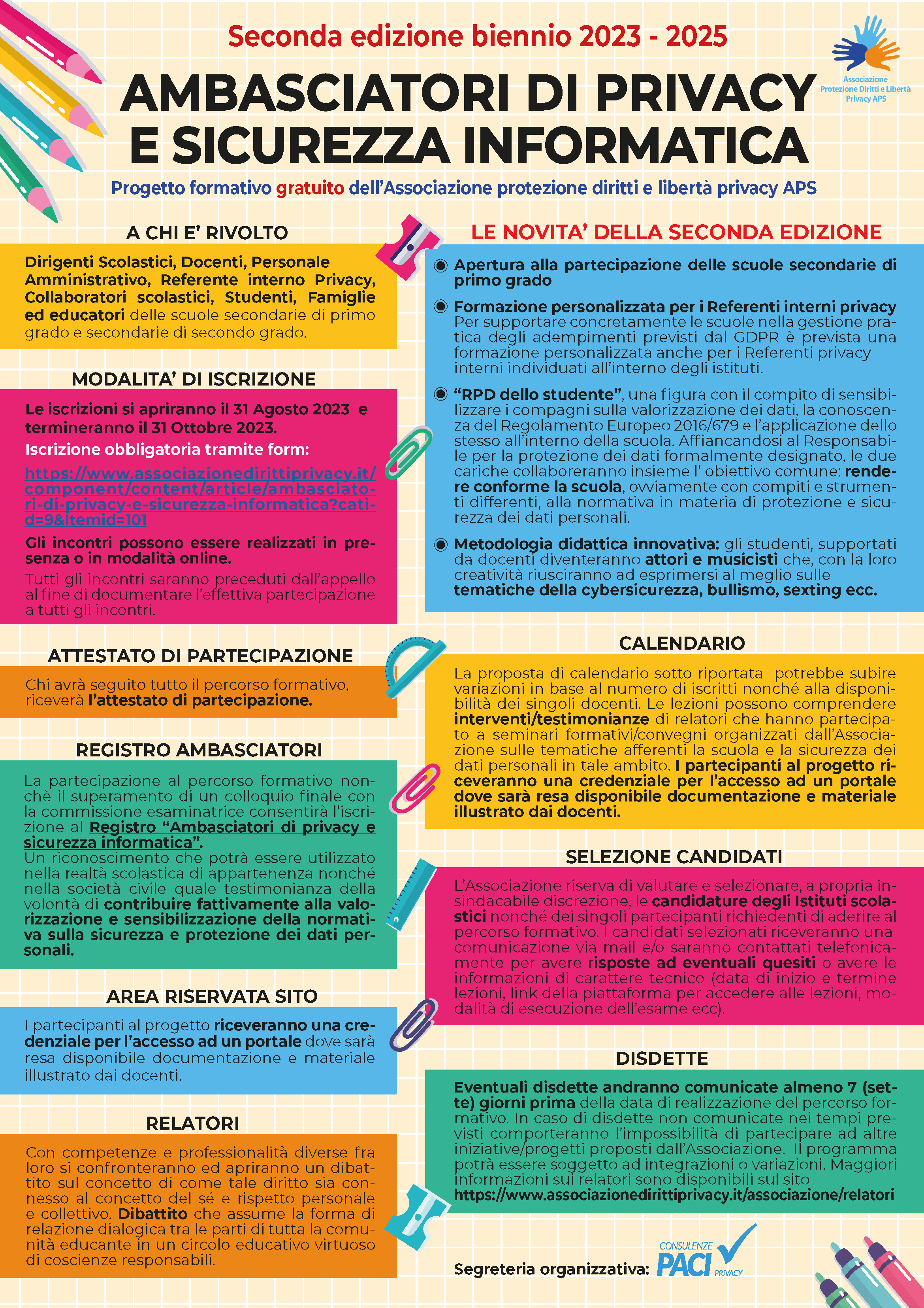 Clicca qui per scaricare il programma Ambasciatori di privacy e sicurezza informatica! (Pagina in continuo aggiornamento) |