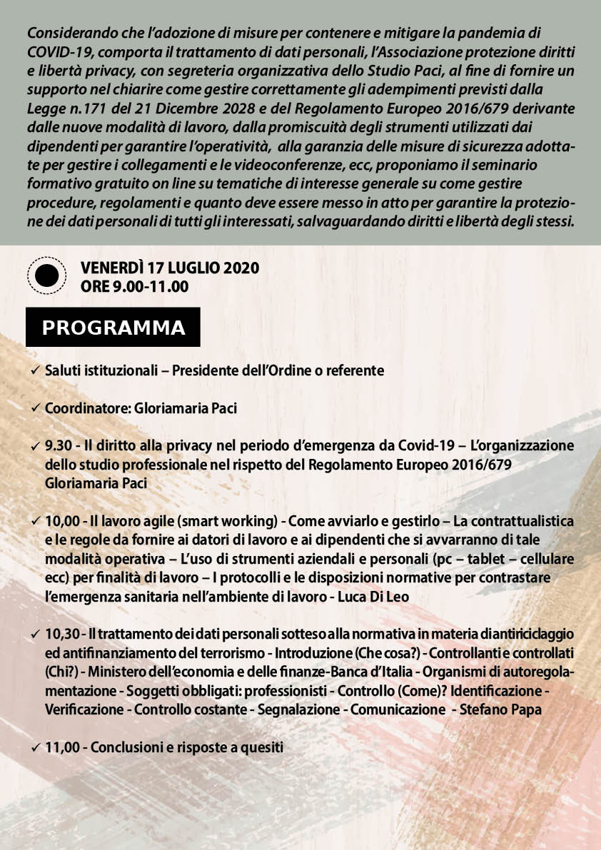 • Gloriamaria Paci, Consulente in materia di privacy – Data Protection Officer – Presidente Associazione protezione diritti e libertà privacy APS